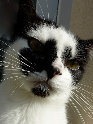 J'aime cette tête tachetée de noir et de blanc, on ne saurait dire s'il est blanc et noir, ou noir et blanc!!!