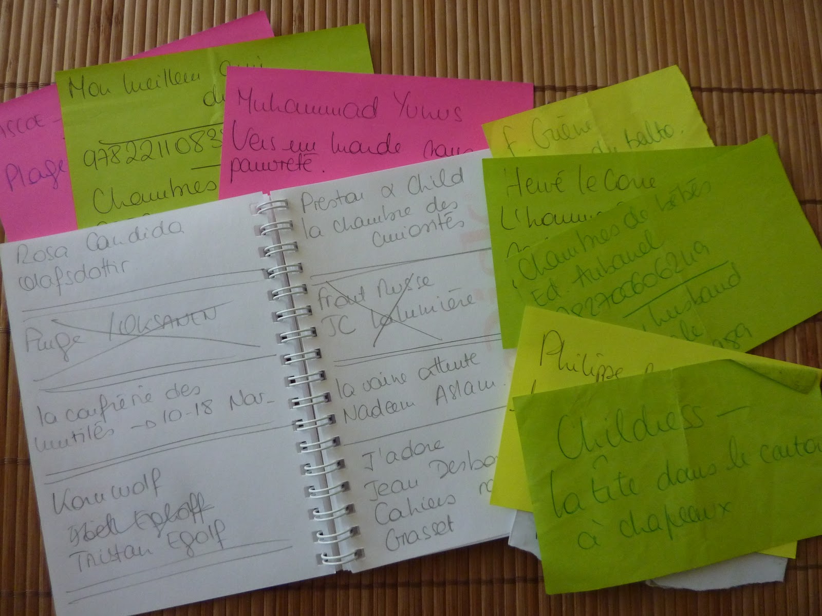Mon petit carnet est sans prétention mais j'y tiens comme à la prunelle de mes yeux puisque j'y note tous les titres, toutes les références des livres à côté desquels je ne veux pas passer.