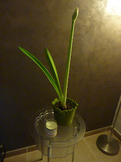 Avant d'assassiner, dans les semaines qui viennent, un pauvre sapin qui n'a rien demandé à personne, je me suis accordé le temps d'une réussite : je fais pousser un amaryllis.