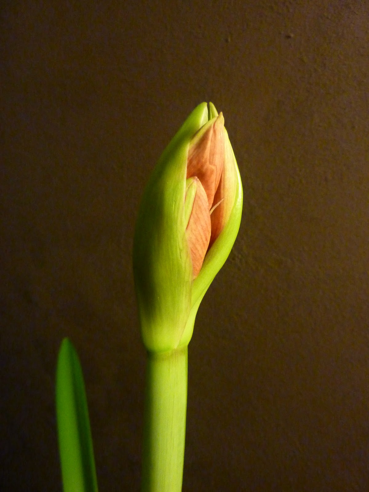 Deux pauvres feuilles, une hampe de 70 centimètres, surmontée d'un minuscule bourgeon... Waouh... Ça claque, non...?