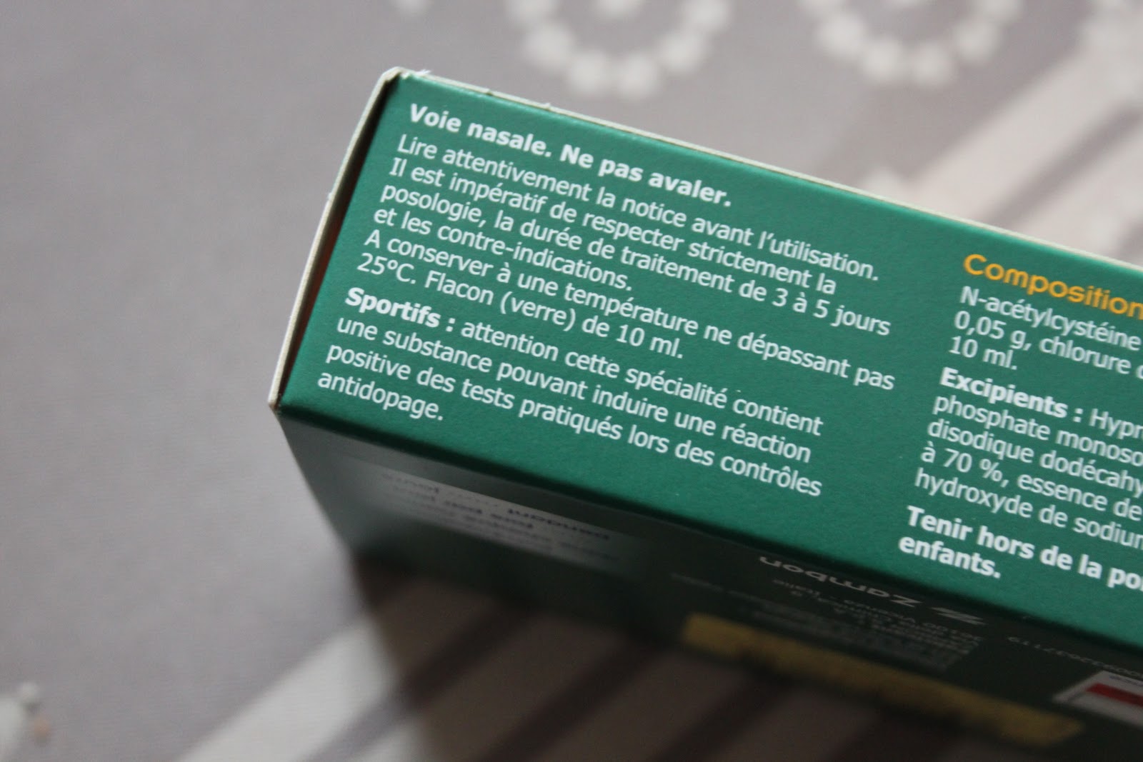Mademoiselle A. est malade, son père l'a donc emmenée chez le médecin ce midi. Verdict pas affolant. Chiant mais pas affolant : il ne s'agirait que d'une grippette. Avant de revenir à la maison, ils passent par la pharmacie. La jeune fille étant susceptible d'être à tout instant soumise à un contrôle antidopage demande bien à la pharmacienne si les médicaments prescrits ne posent pas de problème. La dame tourne les boîtes dans tous les sens pour finir par lui répondre qu'à priori, rien n'est précisé, donc pas de souci, elle peut les prendre sans crainte. Mais heureusement, de retour à la maison et avant de se fourrer les gouttes dans le nez, notre malade a été prise d'un doute...