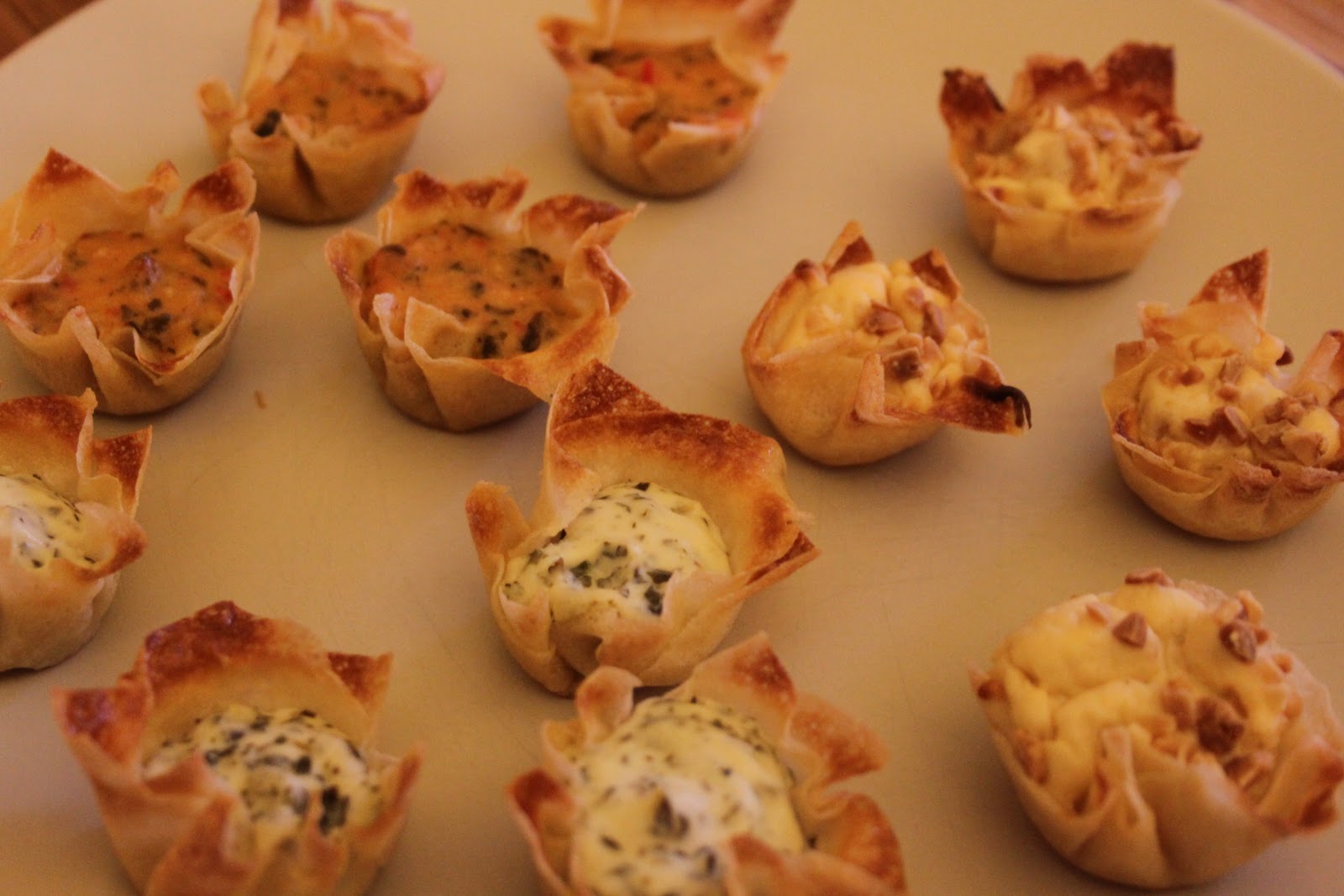 Des petites corolles : chèvre et confit d'oignon, mozzarella et légumes du soleil, fromage frais et menthe...