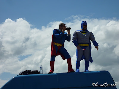 Par contre, j'en ai vu, des choses, sur les bas-côtés, à l'image de ces deux super héros bien perchés...!