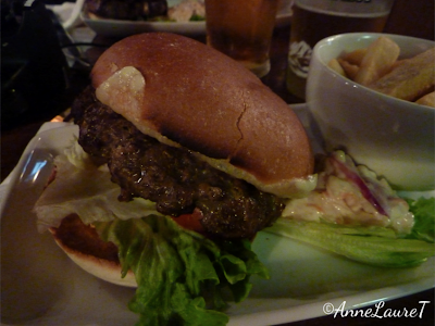 Libre à toi de t'éclater alors avec des fish & chips , perso, j'ai choisi un délicieux hamburger au bœuf angus, qui a dit qu'on ne mangeait pas bien chez nos amis britanniques...!