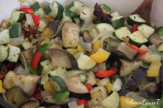 Servies avec une ratatouille à la Anne-Laure, un jour, je te raconterai quel est mon petit secret pour la préparer. Hormis ne pas y mettre de tomates parce que je n'aime pas les tomates cuites...!