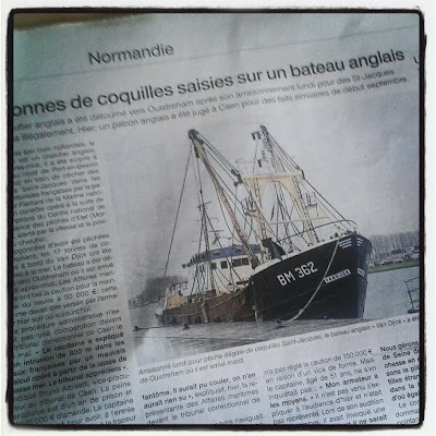 Encore un chalutier étranger arraisonné pour pêche illégale de coquilles saint-Jacques... Toutes les semaines, on en entend. Et 17 tonnes, et 13 tonnes et demi, et quoi encore...? Alors OK, la coquille, elle pullule ici cette année, mais la pêche, elle est régie par des lois. Et ces lois, elles doivent être respectées, c'est comme ça. Quant au pillage des ressources marines, on sait bien évidemment où il va mener, y'a pas besoin de diplôme d'océanographe pour ça.