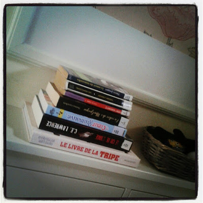 Tu me diras, il semblerait que ce soit le propre des passions. Mais ici, notre cohabitation avec les livres commence à poser certains problèmes : quasiment toutes les pièces de la maison sont colonisées, certaines bibliothèques sont occupées sur deux niveaux même si je déteste ça, on n'a pas toujours le choix. Mes beaux-parents nous ont bien proposé un grand meuble qui arrangerait bien nos affaires, encore faudrait-il que nous trouvions un endroit où le mettre...