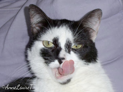 J'adore ta première photo, il fallait saisir cette langue ^^ Mais ils sont tous mignons et tu crois qu'elles léchouilleraient mon velouté aux petits pois avec plaisir ? Bisous Anne-Laure :)