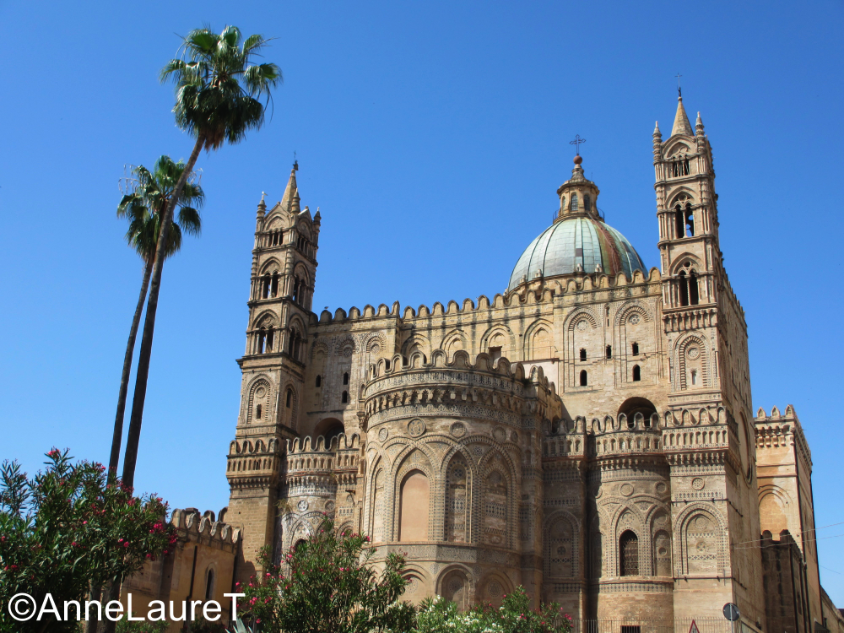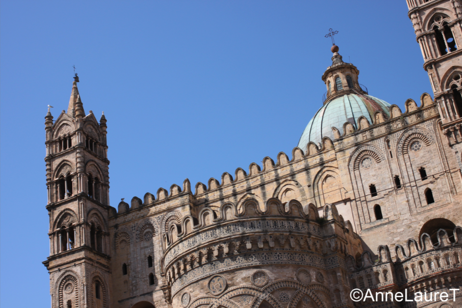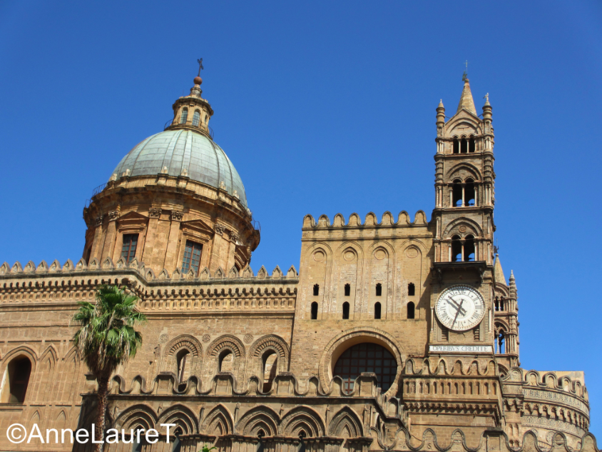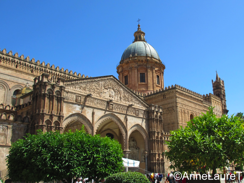 Je t'ai laissé à Palerme à la fin de notre première promenade dans la ville. Cet avant-goût nous ayant donné envie d'en voir plus, et même beaucoup plus, nous nous sommes levés tôt le dimanche matin. Après un copieux petit-déjeuner, un difficile choix de vêtements vu la chaleur qui régnait sur la capitale sicilienne de jour-là, un tartinage de crème solaire indice super-élevé dans les règles, nous nous sommes lancés. Direction la cathédrale, puis le Palais des Normands, qui, lui, fera l'objet d'un autre billet.