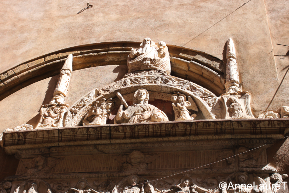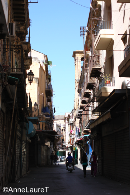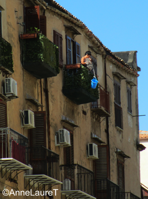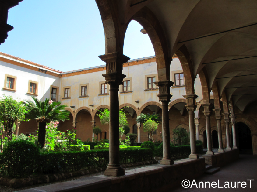 Jusque là, tout était simple puisqu'en ligne droite ! Mais une fois le théâtre passé, nous nous sommes enfoncés dans les petites ruelles, en maintenant le cap vers la cathédrale. Tu commences à le savoir, c'est quand on sort un peu des sentiers battus que je me régale le plus. Alors bien évidemment, la progression est devenue plus lente, bien plus lente. Parce qu'à force de lever le nez, et de découvrir mille merveilles, de la scène de balcon aux portes ouvragées, du charmant petit cloître aux jolies horloges perchées, j'en ai passé du temps, à observer, à photographier, à parfois même revenir sur mes pas pour être bien sûre de ce que j'avais vu. Un vrai plaisir que j'aurais adoré faire durer encore plus jusqu'à atteindre l'immense bâtisse édifiée dans le style arabo-normand propre à la région, la cathédrale où, ce jour-là, les petits Palermitains communiaient.