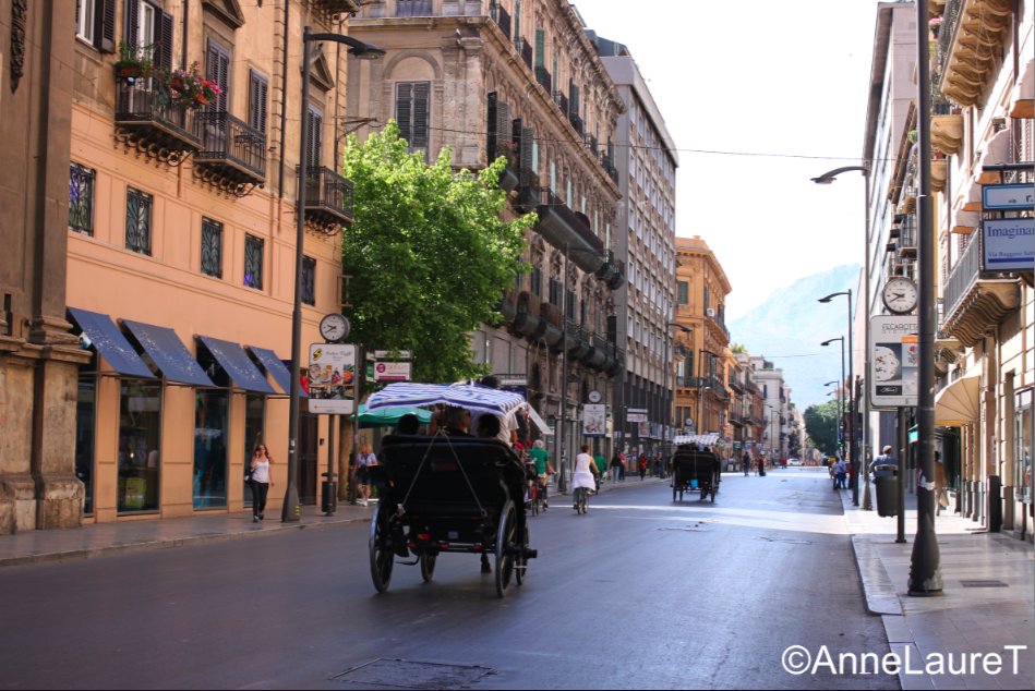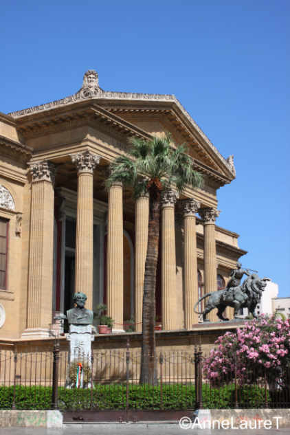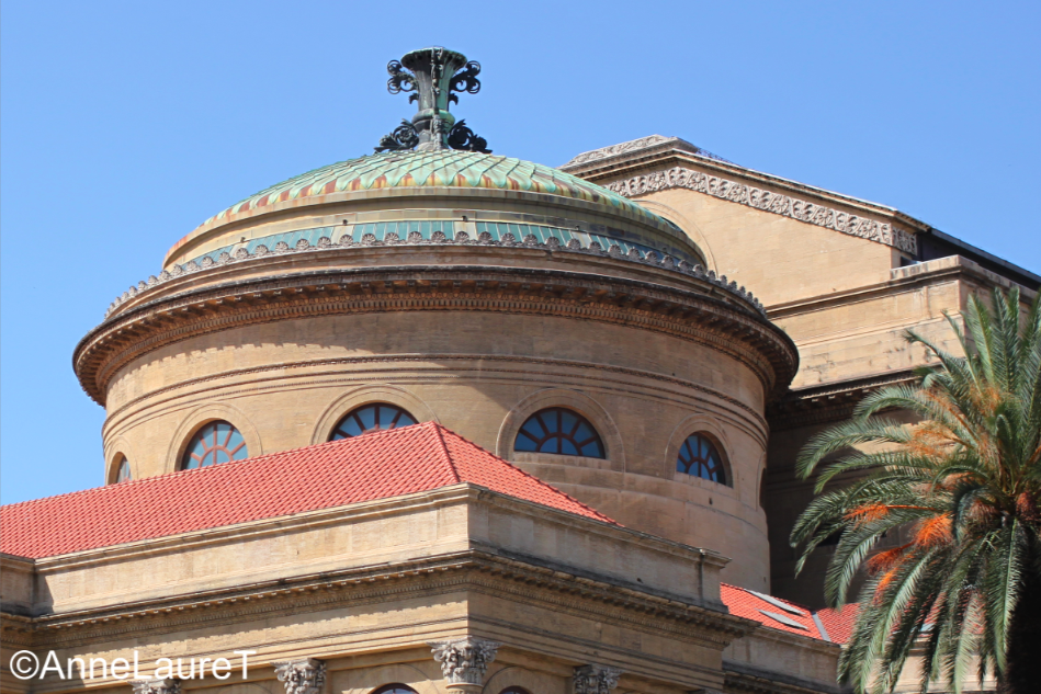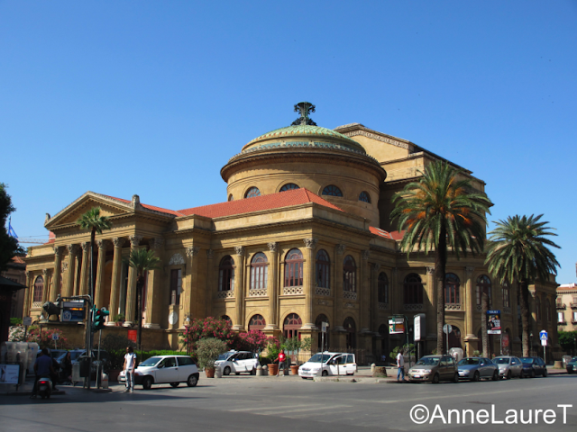 Première très agréable surprise, les immenses via Ruggiero Settimo et via Maqueda ont été rendues aux piétons. Nous n'avons pas réussi à savoir s'il en était ainsi tous les dimanches ou si nous avons eu de la chance, mais vue la conduite à haut risque des Siciliens, nous avons accueilli ça comme une bénédiction ! Du coup, les calèches à touristes, les vélos et les rollers peuvent eux aussi circuler en toute sécurité. Et c'est en cheminant à leur côté que nous sommes allés jusqu'au Teatro Massimo, le plus grand théâtre d'Italie, qui abrite une salle d'opéra sur la scène duquel peuvent se tenir pas moins de 700 acteurs.