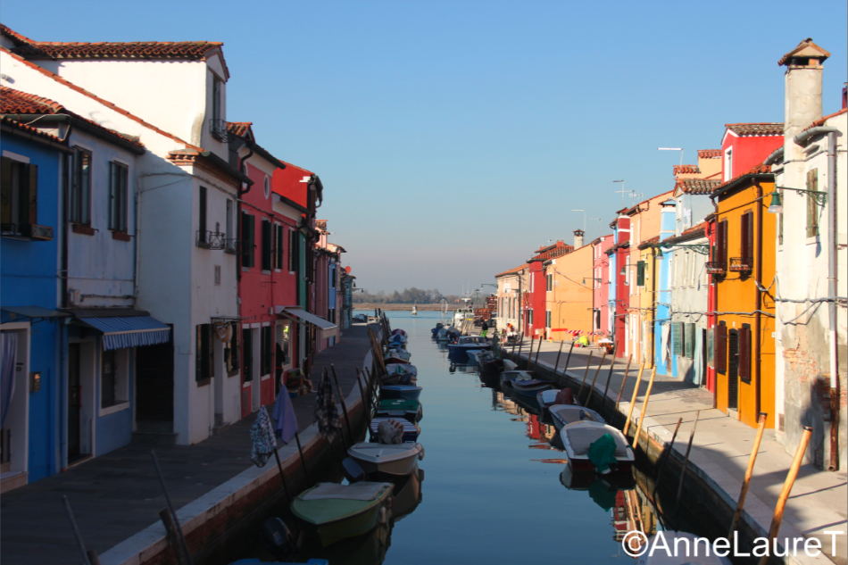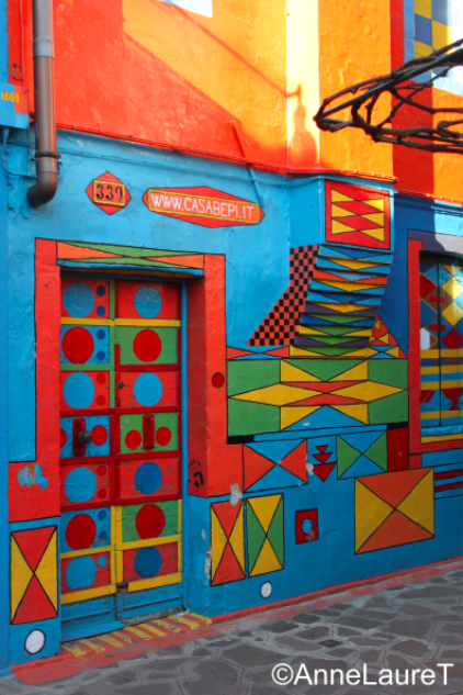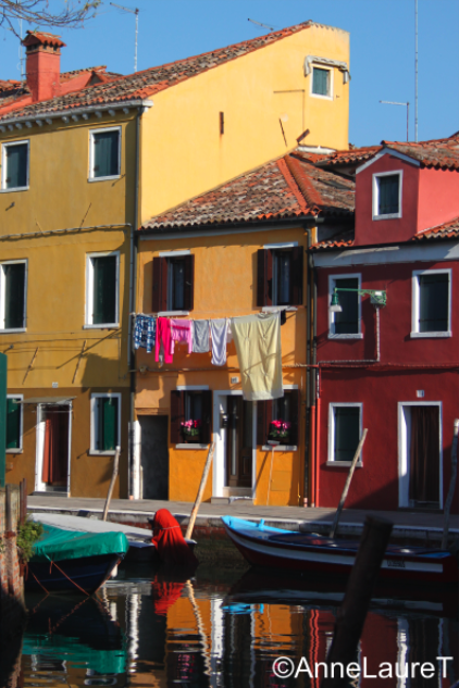 L'île est toute petite, à pied, on en a très rapidement fait le tour. Je te recommande vivement de t'éloigner de la rue principale, la via Galuppi, très commerçante, tendance attrape-touriste. Ne t'inquiète pas, tu ne peux pas te perdre. Et tu découvriras alors combien la vie est douce sur ce petit coin de terre du nord de la lagune. Le linge sèche aux fenêtres ou à même la place devant la maison, on achète ses fruits et légumes sur un bateau, les portes sont souvent grandes ouvertes, et les cheminées ont de drôles de formes... Où que tu poses le regard, tu trouves que les choses ont un charme fou.