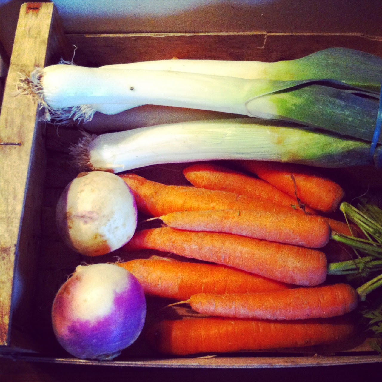 Soirée Filles prévue à la maison ce soir avec Mademoiselle A.. Et je sais quoi préparer pour lui faire plaisir : une bonne soupe de légumes. D'où la traînerie à la ferme d'hier !