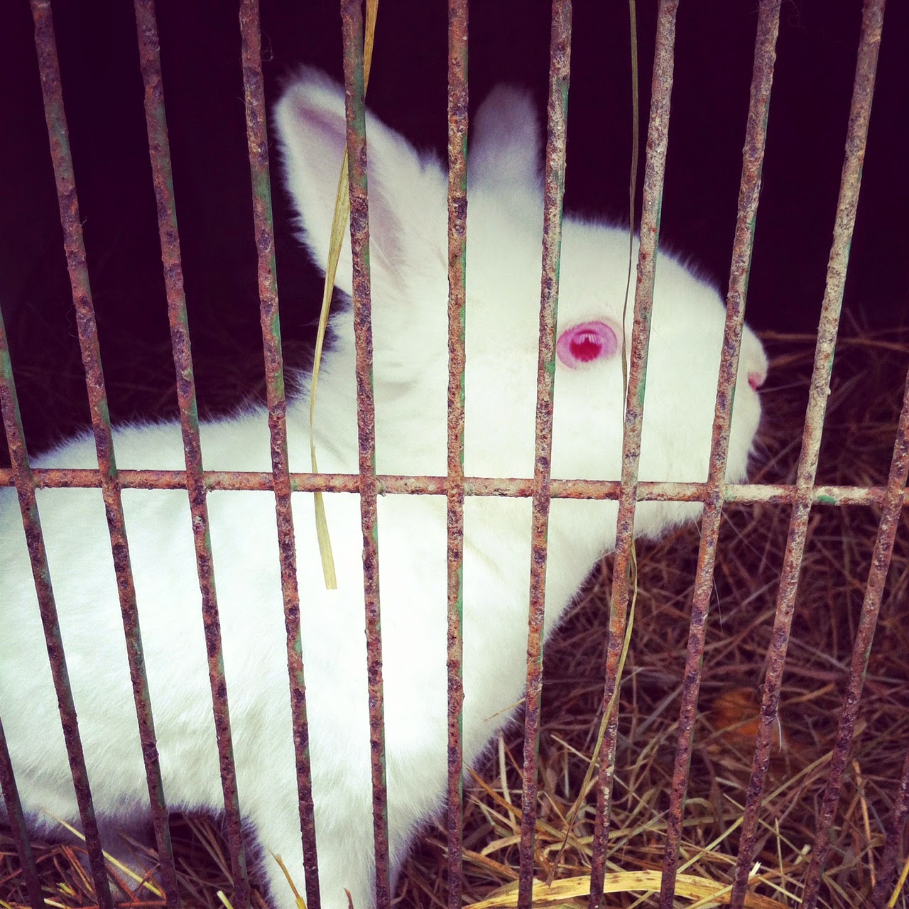 Passage à la ferme pour acheter des œufs. Et le truc qui était censé me prendre deux minutes s'étire à l'infini parce qu'en plus des œufs, il y a des légumes à tomber, que la fermière a toujours du temps pour discuter et que j'ai cinq ans dans ma tête alors hors de question de repartir sans être allée faire un petit coucou aux lapins et aux cochons. Même sous une pluie battante, même en ayant de la boue jusqu'aux chevilles. C'est mon syndrome Fille des Villes / Fille des Champs !