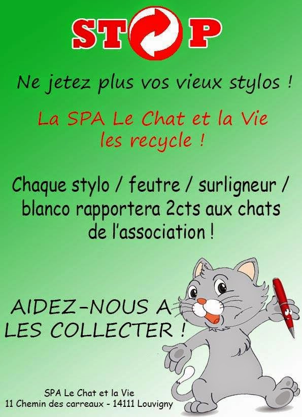 Et depuis le début de l'année 2015, une chouette opération a été mise en place : il s'agit de collecter de vieux stylos dans le but de les recycler. Pour chaque stylo rapporté, l'association touche 2 centimes, ça n'a l'air de rien comme ça, mais tu connais l'histoire des petits ruisseaux qui font la grande rivière toussa toussa, c'est exactement de cela dont il est question ici. Et l'idée m'a d'autant plus plu qu'elle met en avant une pratique que j'estime capitale pour le respect de l'environnement : le recyclage.