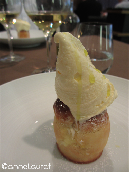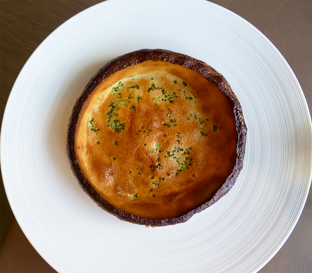 | La Brioche - caramélisée un flan à l'ananas, huile de citron confit & crème glacée au jus de citron jaune |
