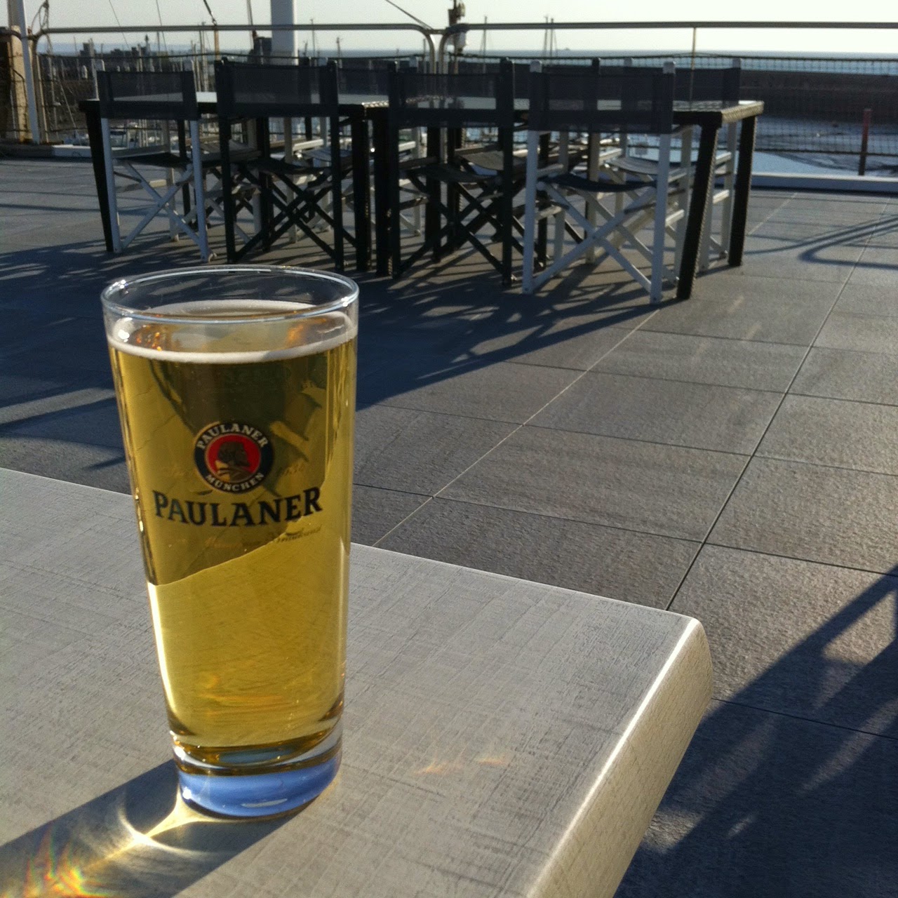 ... siroté un panaché en plein soleil. L'heure de l'apéro avait sonné, nous étions en train de nous promener le long du port de plaisance du Havre, quand nous avons avisé une bien jolie terrasse surélevée et ensoleillée. Il était question d'un club, dont il fallait absolument être membre pour pouvoir en profiter, mais on ne nous a rien demandé. Tant mieux, parce que ça aurait été bien dommage de ne pouvoir savourer un moment si agréable.