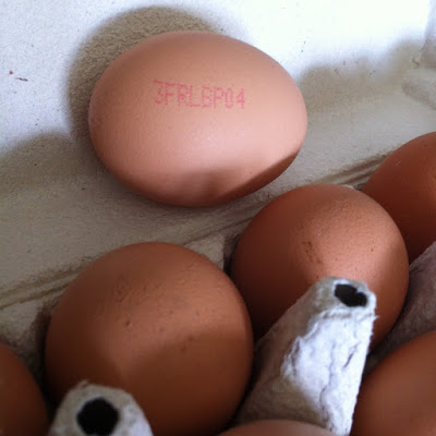 Et puis, ce matin, nous étions au marché avec MariChéri, pour remplir notre traditionnel panier de légumes du vendredi matin. En face de notre maraîcher, un type qui vend de la crème et des œufs, des volailles aussi. Va savoir pourquoi, MariChéri me propose d'acheter nos œufs chez lui. Ils sont beaux, pas trop cher, et accessoirement, le type en question n'est autre que le beau-frère de notre maraîcher, pourquoi pas ! Même si, en fait de "pourquoi pas", je crevais d'envie de lui dire de d'abord vérifier le code sur les-dits œufs. J'étais en train de choisir des tomates, il y avait du monde autour de nous, je me suis fustigée intérieurement de ce besoin que j'ai de ne jamais faire confiance à personne, il était 7h45, je me suis dis que je n'allais pas commencer ma journée en emmerdant le monde... On les a donc achetés sans regarder.