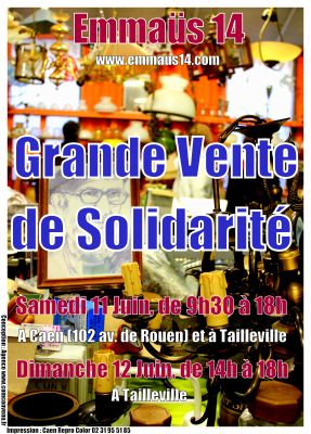 Emmaüs, c'est mon spot shopping depuis longtemps, particulièrement depuis que je n'ai plus de revenus. Un moyen d'acheter pas cher et solidaire, de donner une deuxième/troisième/quatrième vie, voire plus, aux objets et surtout parce que la consommation à tout prix, ça a une fâcheuse tendance à me gonfler. Alors tu penses bien que j'encourage tout le monde à participer à cette grande vente. Le samedi uniquement sur Caen, et durant tout le week-end à Tailleville, les horaires et les adresses sont indiqués sur l'affiche ci-dessus, clic-clic. Accessoirement, tu n'es pas à l'abri de dénicher des perles !