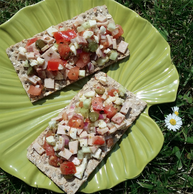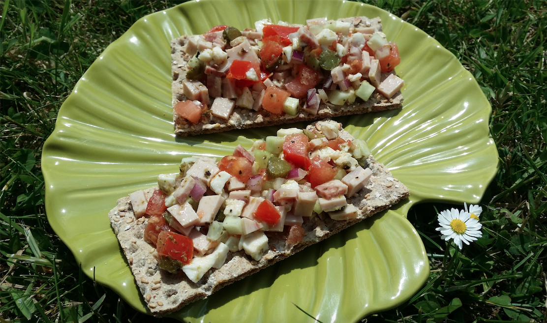 Chaque mois, quand je reçois ma Degustabox, j'ai hâte non seulement de découvrir les produits qu'elles contient, mais aussi et surtout de les essayer en cuisine. Le thème de la box de mai était le pique-nique. Coup de chance, elle est arrivée à la maison lors d'une des trop rares journées ensoleillées que nous ayons connu dernièrement ici en Normandie. Ni une ni deux, j'ai cédé à l'appel de la petite tartine du soleil. Que j'aurais pu au passage baptiser Fourre-z'y-tout parce que j'en ai profité pour vider mes placards et mon frigo.