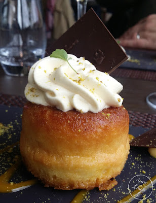 | Baba au rhum, crème chantilly à la mangue, compotée de mangue |