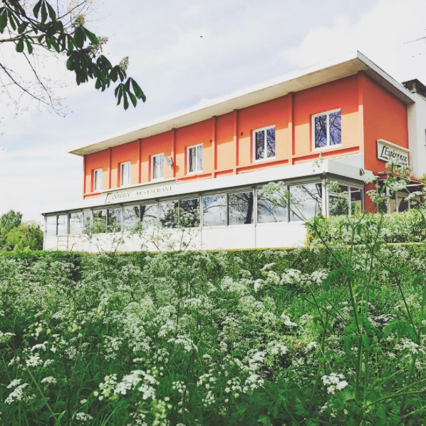 L'Espérance se trouve à Hérouville, le long du canal qui va de Caen à la mer, dans un véritable havre de paix. Le lieu existe depuis 1899, a traversé les ans en restant dédié à la convivialité et au bien-vivre, une belle histoire que tu peux lire par ici.