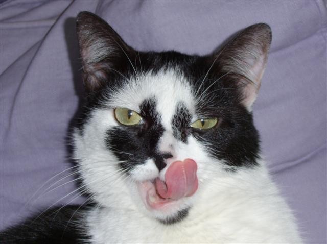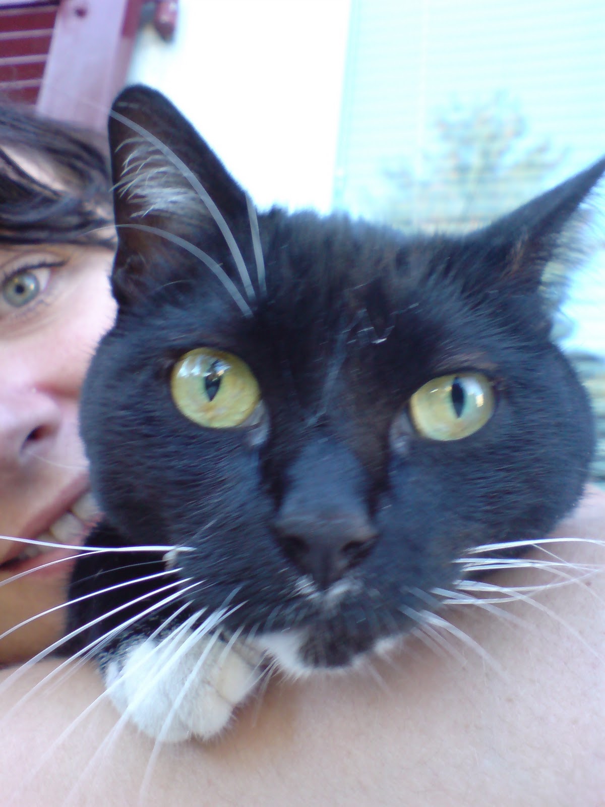 Et puis, juste pour le plaisir, une petite photo de mon autre minette, Toupie, parce qu'elle me fait rire et que je n'en reviens toujours pas d'avoir réussi à la prendre !