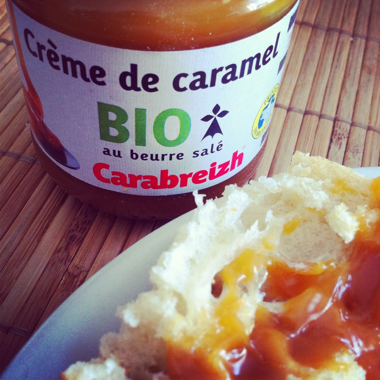 Tiens, par exemple, ce petit truc que mon Chéri a rapporté d'un de ses déplacements en Bretonnie : la crème de caramel au beurre salé, bio en plus.