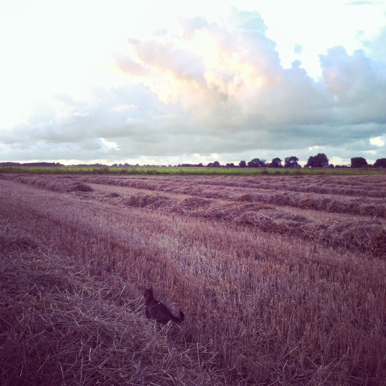 Et voilà, Couscous profite de quelques jours de répit après la moisson, pendant que ce qu'il reste des blés paresse encore dans les champs en attendant que l'agriculteur revienne pour les mettre en balles. Un terrain de jeu toujours aussi fantastique si je peux en juger au nombre de petits rongeurs rapportés à la maison... :/