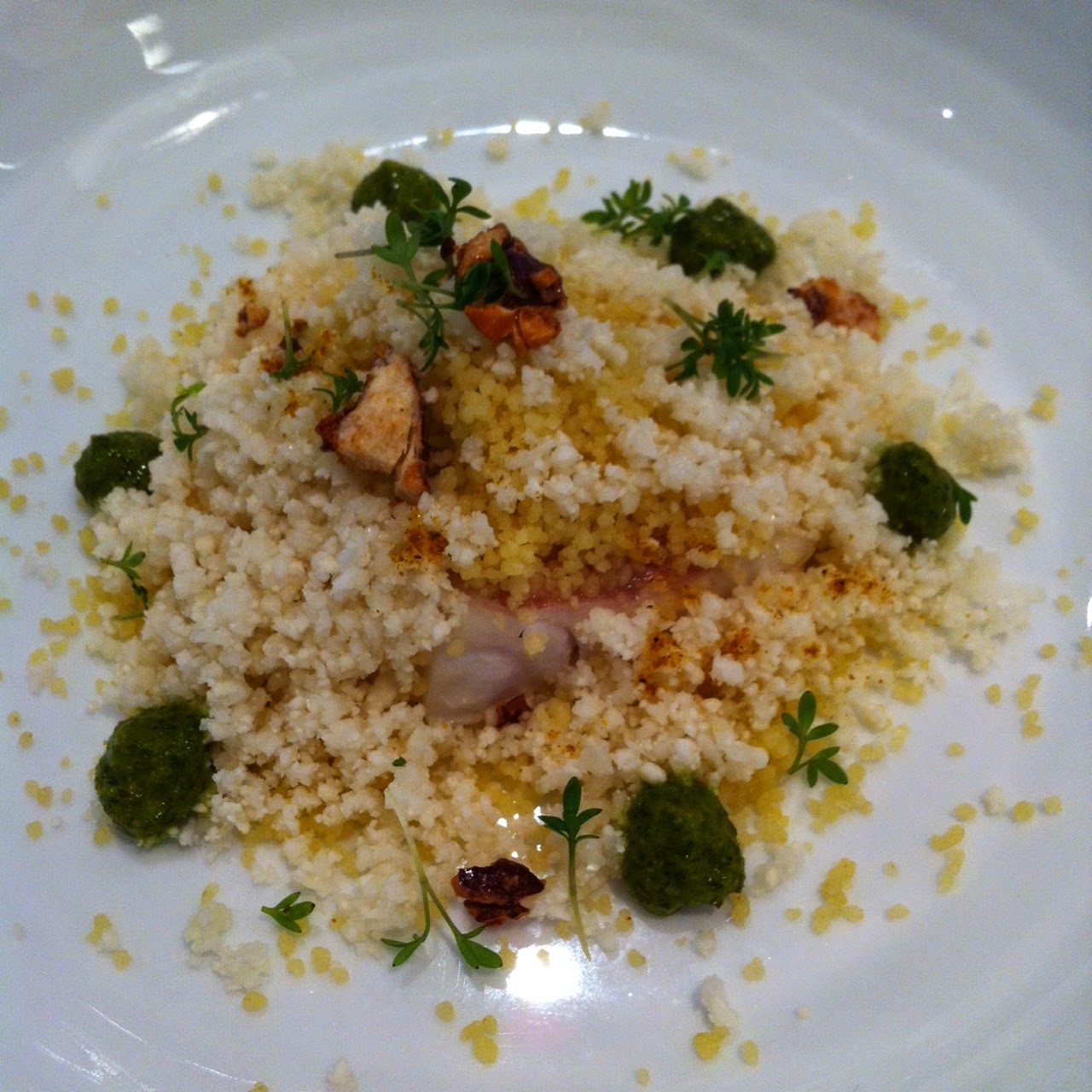 | La Daurade - étuvée chou fleur râpé & semoule, amandes caramélisées & vinaigrette dite "Chermoula" |