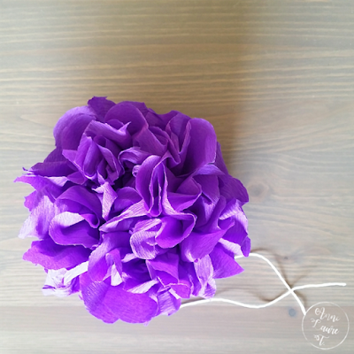 Ambiance papier crépon et déco de mariage, avec ces jolies fleurs qu'elle m'a appris à faire. J'avoue que j'ai amèrement regretté qu'elle n'ai pas été en âge de les faire lors de notre mariage. Parce qu'elles sont quand même super jolies et m'auraient probablement coûté moins cher que celles que la flemmarde que je suis a achetées à l'époque. 😉